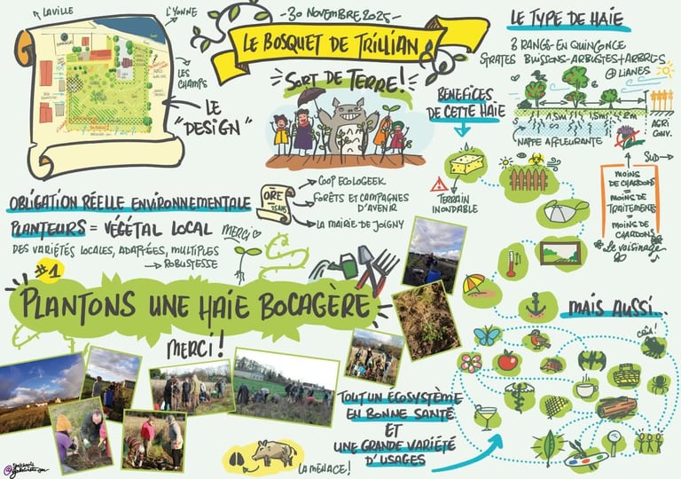 Expérience en cours de créer un verger à capacité d'absorption des crues de l'Yonne avec mise en place d'une ORE Obligation Réelle Environnementale avec la ville et Forêts et Campagnes d'Avenir.
